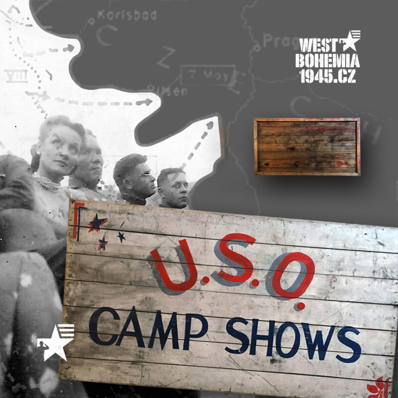 Unikátní dřevěná deska s malovaným nápisem U.S.O. CAMP SHOWS je na zadní straně pomocí šablony značena znakem amerického XXII. sboru, který pod velením generálmajora Ernesta Nasona Harmona působil společně s 8. obrněnou divizí a 79., 80. a 94. pěší divizí v západních a jihozápadních Čechách od poloviny června až do listopadu 1945. Zkratka U.S.O. představuje charitativní neziskovou organizaci United Service Organizations (USO), která vznikla v únoru roku 1941 za účelem poskytnutí živé zábavy příslušníkům ozbrojených složek Spojených států amerických. Již v říjnu 1941 pro pobavení vojáků v Karibiku USO vyslala na první zámořské turné komiky Laurela a Hardyho, Chico Marxe a filmovou hvězdu Mitzi Mayfair. Vojáci, letci a námořníci sloužící v Evropě nebo v Tichomoří tak mohli shlédnout řadu živých vystoupení hollywoodských profesionálů, producentů, herců, zpěváků, hudebníků, komiků a nebo tanečníků. V pětačtyřicátém roce se proto na českém západě objevilo mnoho známých i méně známých osobností u nás jako například Marlene Dietrich, Ingrid Bergmann, Jack Benny, Bob Hope, Jane Froman, Patti Thomas, Gale Robbins, Larry Adler, Jerry Colonna a mnoho dalších. Desku jsem získal koupí před pár lety, je poměrně robustní a velmi kvalitně zpracovaná o rozměrech cca 170 x 100 centimetrů, mnoho desítek let ji uchovával pamětník a původně pochází z malého města Kdyně ležícího na spojnici okresních měst Klatov a Domažlic v blízkosti německých hranic.