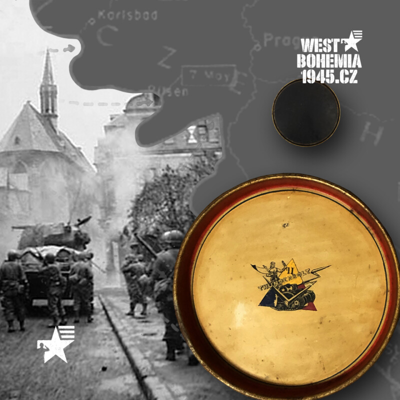 Plechový podnos, pivní tác s ručně malovaným znakem 11. obrněné divize a s její přezdívkou "THUNDERBOLT", kterou jednotka získala během rychlého postupu v prosinci 1944, aby posílila americké jednotky bránící se německé protiofenzívě v bitvě v Ardenách pravděpodobně pochází z poválečného Rakouska a získal jsem ho od sběratele US Air Force militarií Viktora Plase v květnu 2021. Divize byla zformována 15. srpna 1942 v Camp Polk ve státě Louisiana, následně se zúčastnila Texasko-Louisianských manévrů a výcviků v Camp Barkeley v Texasu, v Camp Ibis a v Camp Cooke v Kalifornii a v Camp Kilmer v New Jersey než byla přepravena 12. října 1944 do Southamptonu v Anglii. Počátkem prosince se divize vylodila ve francouzské Normandii a krátce po svém příjezdu do Evropy byla nasazena do Francie a Belgie, aby zaútočila na postupující německé síly při bitvě v Ardenách, v březnu 1945 se přesunula do Porýní, postupovala na východ do srdce Německa a z Durynska na jih do Bavorska a dále do Rakouska podél hranic Československa, které několik hlídkujících jednotek i překročilo. Za čtyři měsíce a dva týdny se "Thunderbolt" divize probojovala řadou německých měst a předvedla nejrychlejší přesun ve vojenské historii a 5. května 1945 dobyla rakouské město Linec a setkala se s Rudou armádou, osvobodila koncentrační tábory Gusen a Mauthausen a po ukončení bojů se až do září 1945 zabývala okupační činností, poskytovala lékařskou pomoc propuštěným vězňům z táborů smrti, zajistila pohřby tisícům obětí nacistické brutality, zpracovávala a navracela vysídlené osoby, válečné zajatce a podporovala rakouské úřady při udržování pořádku mezi civilním obyvatelstvem.