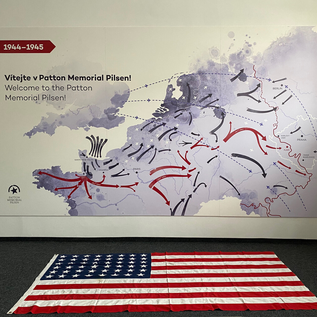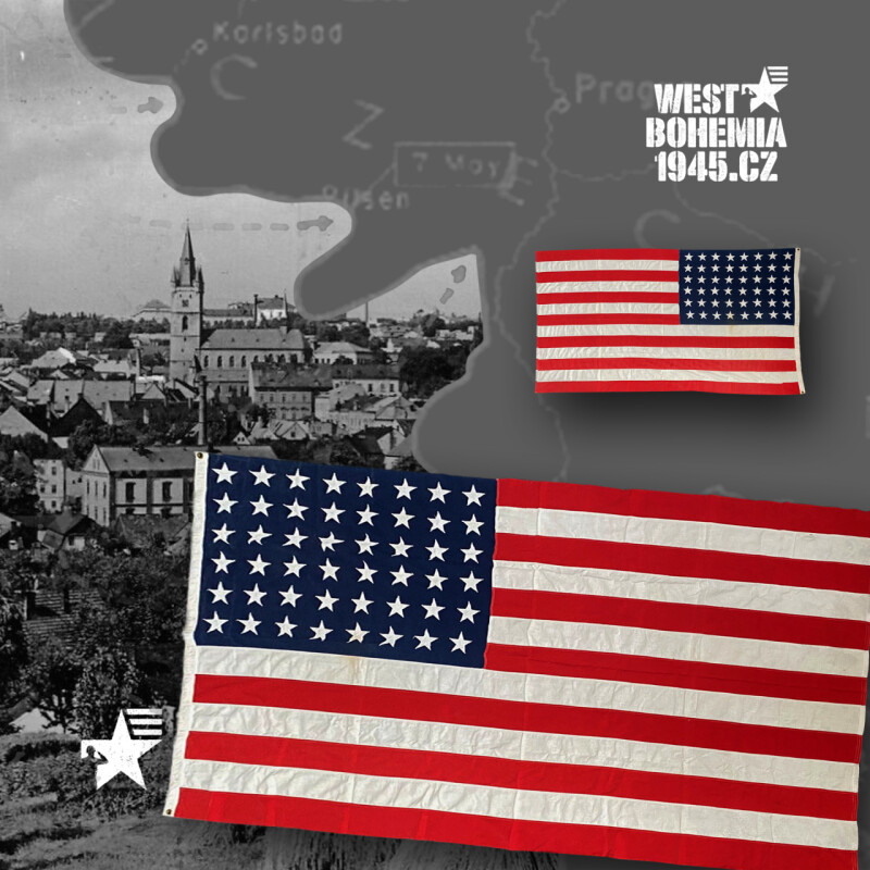 Tato americká vlajka byla vyvěšena na radnici města Tachova po osvobození západní části Československa v květnu 1945 a mnoho let ji se sdílením této historie uchovávali a při své klubové činnosti příležitostně používali členové Klubu 3. Armády Plzeň, které znáte jako majitele vojenských historických vozidel z tradičního konvoje Slavností svobody v Plzni nebo z jejich konvoje vítězství po mnoha městech a obcích v jihozápadních Čechách. Vlajka byla například součástí doprovodné výstavy k odhalení pamětní desky 15. polnímu dělostřeleckému praporu 2. pěší divizi na budově obecního úřadu v Losiné, která se konala 7. května 2018 u příležitosti 73. výročí osvobození obce a regionu americkou armádou za přítomnosti amerických veteránů Jamese H. Duncana, Earla Ingrama, George Thompsona a Douga Brackenbrougha. Bavlněná vlajka USA se 48mi hvězdami je ve velmi pěkném stavu a má rozměr cca 150 x 280 cm. Osvobození města Tachova připomíná milník věnovaný 386. pěšímu pluku 97. pěší divize zvané "Trident" a pomník osvobození města Americkou armádou dne 2. května 1945, který je umístěn na okraji parku u Kostela sv. Václava. Pro divizi "Trident" a brigádního generála Miltona B. Halseye se právě Tachov stal 5. května 1945 prvním velitelským stanovištěm na území Československa.
