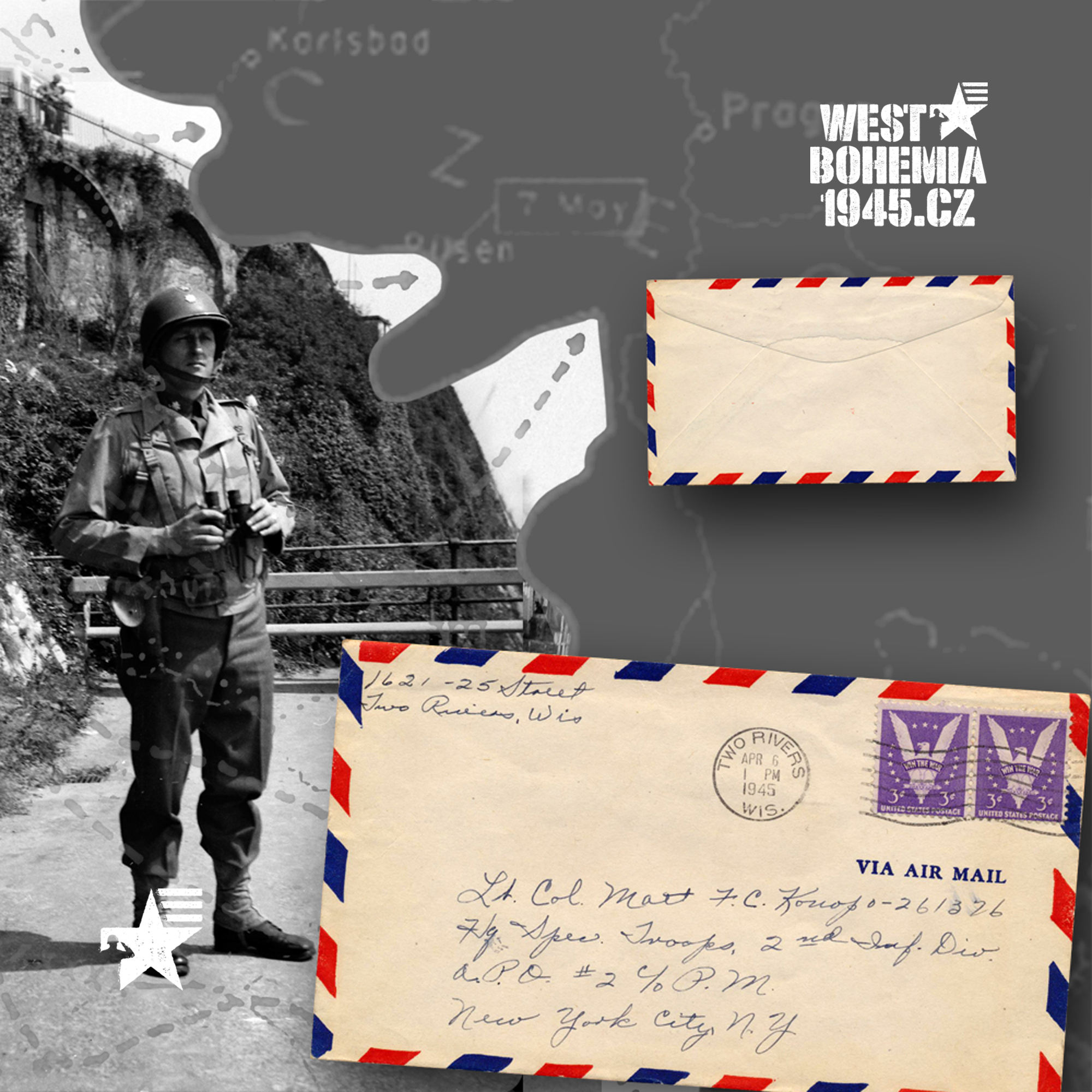 Ve sbírce 2. pěší divize se nachází zajímavá dopisní obálka adresovaná v dubnu 1945 podplukovníkovi Mattu F. C. Konopovi, zpravodajskému důstojníkovi slavné "Indianhead" divize, který se podílel na osvobození Chodska odkud pocházeli shodou okolností jeho prarodiče. Obálku jsem před lety získal výměnou od pana Pavla Hauznera († 2022) z Plzně, známého plzeňského pamětníka osvobození a významného sběratele americké polní pošty v České republice. V roce 2015 byla u příležitosti 70. výročí osvobození města Domažlice a okolí odhalena bronzová pamětní deska na domě čp. 58 "U Hrušků", která je věnována právě tomuto osvoboditeli Chodska. Město Domažlice udělilo čestné občanství také svým osvoboditelům, americkým veteránům 2. pěší divize, Robertovi Gilbertovi, Jamesi H. Duncanovi, Hermanovi Geistovi a v neposlední řadě i Mattu Konopovi. Za Matta Konopa in memoriam převzal čestné občanství v roce 2016 jeho vnuk Patrick Dewane, který představuje svého dědečka ve své jedinečné one-man-show "The accidental hero" a vystupuje úspěšně s touto hrou nejen v USA, ale i u nás v západních Čechách již několik let. Díky Patrickovi máme možnost se tak seznámit s Konopovo válečnými vzpomínkami týkajících se např. tvrdých bojů v Ardenách či radostného osvobození Chodska a Plzeňska.