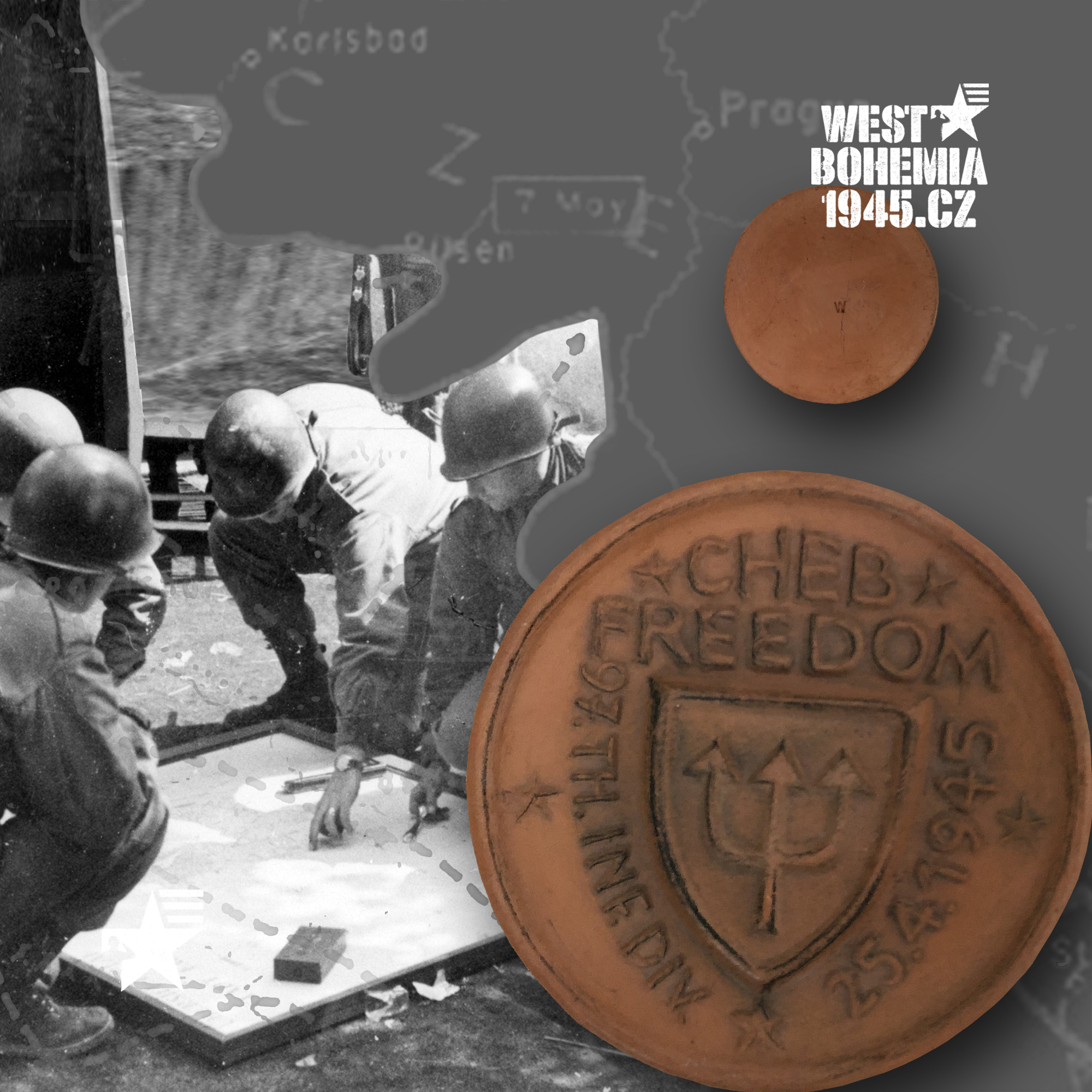 První informaci o existenci suvenýru věnovanému 97. pěší divizi "Trident" jsem dozvěděl na webu válka.cz a pak díky Lubomírovi Hobzovi a Dušanovi Holému se mi jej podařilo získat v roce 2015. Hliněný talířek je opatřen signací "W" zatím neznámého výrobce, znakem divize a nápisy "Cheb", "Freedom", "97.TH. INF. DIV.", "25.4.1945" a pravděpodobně mohl sloužit i jako pivní podšálek. V únoru 1945 se 97. pěší divize vylodila ve francouzském Le Havre a pod vedením brigádního generála Miltona B. Halseye ji těžké boje zastihly v oblasti tzv. „Ruhrské kapsy“ a ve městě Siegburg odkud pak postoupila a chránila levé křídlo 3. americké armády generála Pattona až do západních Čech. Město Cheb, německy Eger, ležícím 40 km jihozápadně od Karlových Varů a 5 km od německých hranic na řece Ohři, bylo ve dnech 25. až 26. dubna 1945 pro muže s rukávovým znakem "Trojzubce" poslední velkou bitvou v Evropě, avšak za cenu desítek ztrát. Ačkoliv byla divize na našem území velmi krátce, zasloužila se velmi o osvobození českého západu. Její ztráty a boje na konci 2. světové války u nás připomínají pomníky v Chebu, v Mariánských Lázních, v Plané u M. L., v Tachově, v Boru, ve Stříbře nebo v Konstantinových Lázních a nyní i v Kralovicích na severním Plzeňsku. Tato divize jako jediná působící na našem území pak po válce v Evropě plnila okupační službu v Tichomoří, na japonském ostrově Honšú.