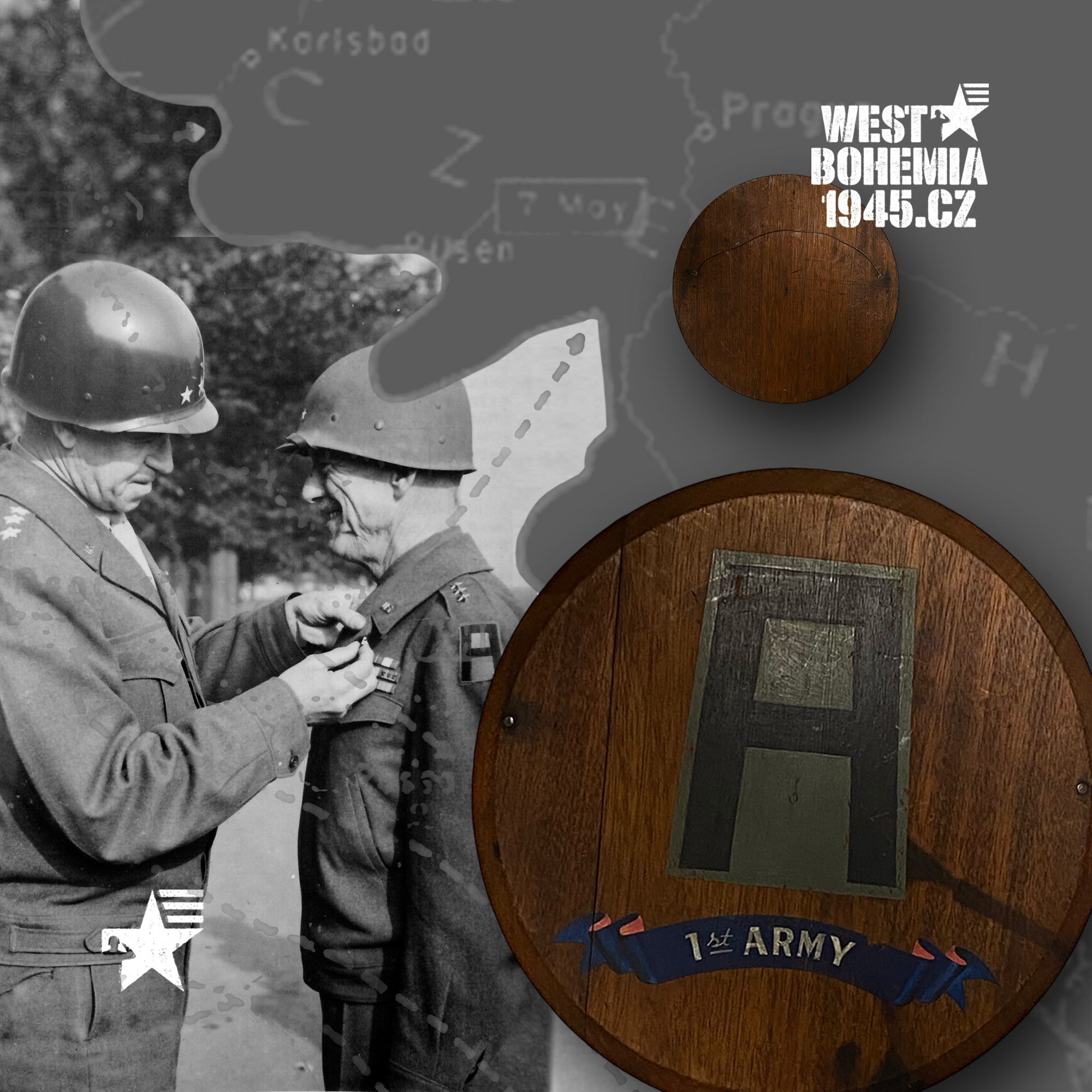 Tento dřevěný talířek s malovaným znakem a označením 1. americké armády jsem před lety získal v dražbě na mezinárodní aukci eBay.com a byl vyroben ve 40. letech minulého století. První americká armáda "First United States Army" je nejstarší a nejdéle fungující polní armáda, která byla zorganizována pod americkými expedičními silami během 1. světové války a založena dne 10. srpna 1918 ve Francii, kde jejím prvním velitelem se stal generál John J. Pershing zvaný „Black Jack“. V následujících letech 1919 až 1933 byla deaktivována a od 1. října 1933 podporovala výcvik a jejím hlavním posláním byla organizace, velení a výcvik jednotek pravidelné armády, armádní zálohy a národní gardy. V roce 1943 se "First Army" vrátila do své bojové role polní armády a byla obnovena v Bristolu v Anglii. Dne 6. června 1944 v Den D pod velením generálporučíka Omara Bradleyho se jednotky 1. armády vylodily na plážích Omaha a Utah ve francouzské Normandii, přičemž 1. armáda během invaze velela všem americkým pozemním silám. Postup 1. armády se zastavil až na Labi 18. dubna 1945, kde byla dohodnutá demarkační zóna mezi americkými a sovětskými silami. Součástí 1. armády generála Courtneye H. Hodgese byl v té době i V. sbor generálmajora Clarence R. Huebnera, který se po přiřazení k 3. americké armádě generála George S. Pattona jr. na sklonku konce války podílel na osvobození mnoha měst a obcích v západní části okupovaného Československa.
