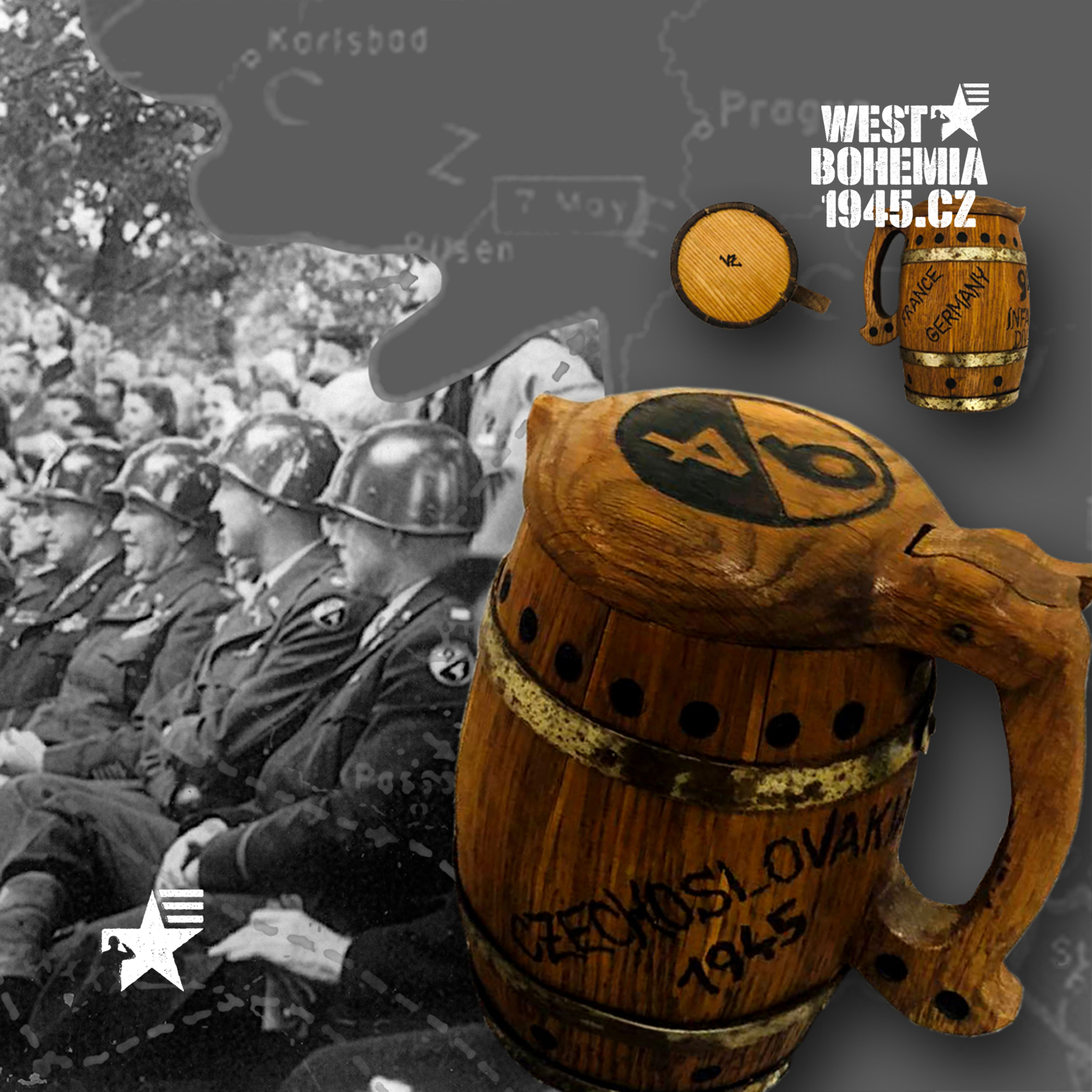 Masivní dřevěný korbel s motivem americké 94. pěší divize přezdívané "Patton´s Golden Nugget" někdy "Pilgrim Division" nebo "Neuf Cats" byl zhotovený bednářským způsobem v pětačtyřicátém roce pravděpodobně v jihozápadních Čechách, kde tato jednotka pod XXII. sborem generálmajora Ernesta N. Harmona působila nejdéle ze všech US divizí u nás. Velmi zručný výrobce se na dně pivního korbelu označil svými iniciály "VZ", avšak dosud se mi nepodařilo zjistit o něm bližší informace, stejně tak místo, kde byl vyroben. Tento suvenýr se povedl získat výjimečně před několika lety na českém inzertním serveru Sbazar.cz a to díky dlouholetým přátelům a sběratelům Honzovi Pichlovi a Jirkovi Bláhovi. Na bocích korbele se uvádí země jako "FRANCE" a "GERMANY", které stručně vystihují svými názvy hlavní bojové akce jednotky v severní Francii, v Ardenách-Alsasku, v Porýní a střední Evropě a na opačné straně nápis "CZECHOSLOVAKIA 1945" pak dokládá působení amerických vojáků a důstojníků 94. pěší divize u nás, a to od poloviny června až do listopadu roku 1945.