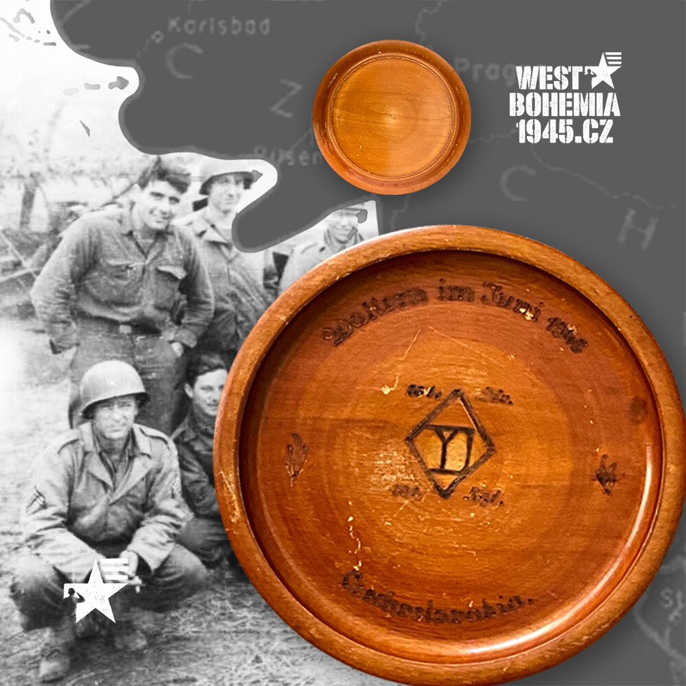 Téměř stejný suvenýr značený “Wallern im Juni 1945” (“Volary v červnu 1945”) jsem prvně zahlédl v roce 2008 ve skvělém průvodci sběratele “Government Issue U. S. ARMY EUROPEAN THEATER OF OPERATIONS COLLECTOR GUIDE VOLUME II” od Henri-Paul Enjamese. Mnoho let vyhledávám podobné upomínkové předměty právě i se znakem americké 26. pěší divize z roku 1945. Tento talířek si přivezl z Čech americký voják, který sloužil ve Volarech u 101. pěšího pluku 26. pěší divize a její přezdívka "Yankee Division" sahá do vzniku jednotky v roce 1917 a začlenění do bojů v 1. světové válce. Město Volary (německy Wallern) leží v jihozápadní části Jihočeského kraje, kde se nachází památník připomínající smrt téměř stovky žen, které zemřeli v závěru války při tzv. “Pochodu smrti” na cestě z koncentračního tábora v Ravensbrücku a Helmbrechtsu. V těsné blízkosti Volar v místě zvaném Stögrova Huť se nachází památník věnovaný poslednímu padlému americkému vojákovi s českými kořeny Pfc. Charlesi Havlatovi (803rd Tank Destroyer Battalion), který padl v posledních hodinách 2. světové války dne 7. května 1945. Dřevěný talířek se mi podařilo získat koncem srpna 2025 ve facebookové skupině “US Military Collectibles “Make Offer” Page”, kde naleznete k prodeji řadu nejrůznějších militarií a kde můžete učinit svoji cenovou nabídku u vystavených předmětů a zároveň podpořit jiného sběratele nebo i neziskovou organizaci jako např. v tomto případě “Honored Legacy Project” z New Jersey. Děkuji Adamu MacMillanovi za umožnění koupě a poslání suvenýru zpět do Čech po 80 letech od konce války.