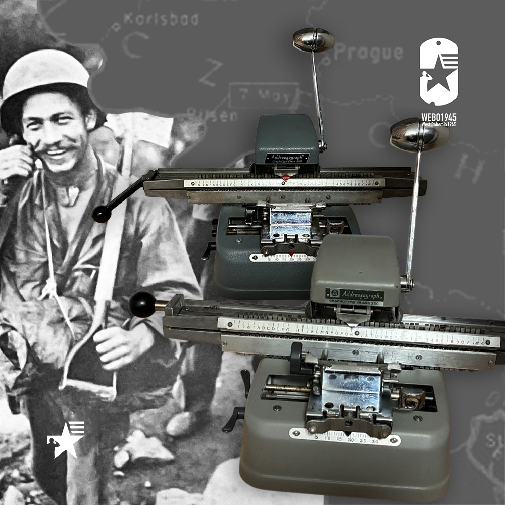 První zmínky o identifikačních známkách u amerických vojáků sahají až do období občanské války (1861–1865). Vojáci si tehdy často vyráběli vlastní provizorní „známky“ z dostupných materiálů – knoflíků, kousků kovu, dřeva či papíru – do nichž ručně vyrývali své jméno a jednotku. Cílem bylo jediné: zajistit, aby mohli být po boji snadněji identifikováni. Neexistoval žádný oficiální standard a každý štítek byl originálem. Teprve během 1. světové války se objevily první oficiálně vydávané hliníkové identifikační štítky. Byly jednoduché, kulaté, a údaje jako jméno, číslo jednotky nebo vyznání se do nich razily ručně pomocí jednotlivých raznic. Každý kus tak nesl stopy ruční práce a stal se osobitým dokladem své doby. Ve 2. světové válce však nastal zásadní zlom s nástupem mechanizované výroby identifikačních štítků. Armáda začala používat robustní razicí stroje Addressograph Graphotype řady 6100, 6200, 6300 a další, které umožňovaly rychlou a přesnou ražbu kovových štítků se jménem, armádním číslem a dalšími údaji vojáka. V poválečném období se pak nejrozšířenějšími modely staly stroje řady Graphotype 350, 355 a jiné. Spolehlivě sloužily několik desítek let a díky svému jednoduchému, čistě mechanickému pákovému systému, který připomíná „jednorukého banditu“, se staly nepostradatelnou součástí vojenské administrativy. Přestože se již nevyrábějí, jsou dodnes dostupné, velmi vyhledávané a patří k nejoblíbenějším strojům celé řady. Jsou malé, přenosné a ideální pro výrobu psích známek v terénu, a to bez nutnosti použití elektřiny. S postupem času byly mechanické modely doplněny a později nahrazeny elektrickými stroji, které dále urychlily práci a zvýšily přesnost i pohodlí obsluhy. Klasické stroje Graphotype si však dodnes drží své místo mezi sběrateli a historiky – jako připomínka éry, kdy se trvanlivé kovové dog tags vyráběly poctivou mechanickou technikou. IR#WestBohemia1945